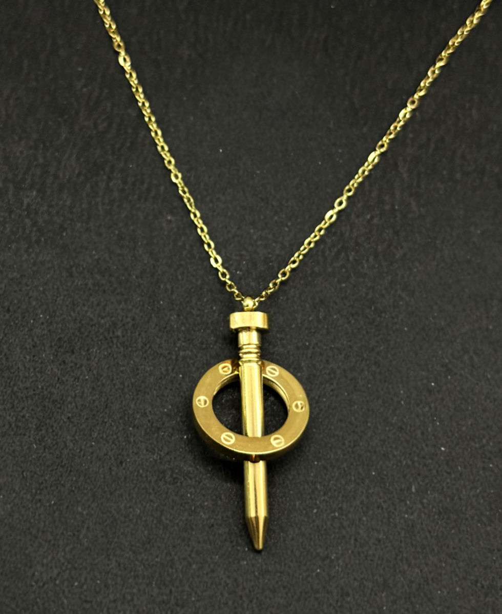 GOLDEN CURVED CIRCLE DOUBLE CHAIN NECKLACE