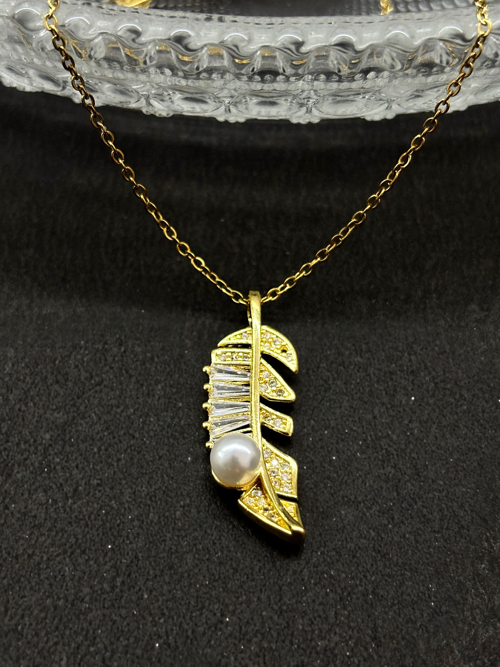 AMERICAN DIAMOND PEARL LEAF GOLDEN NECKLACE