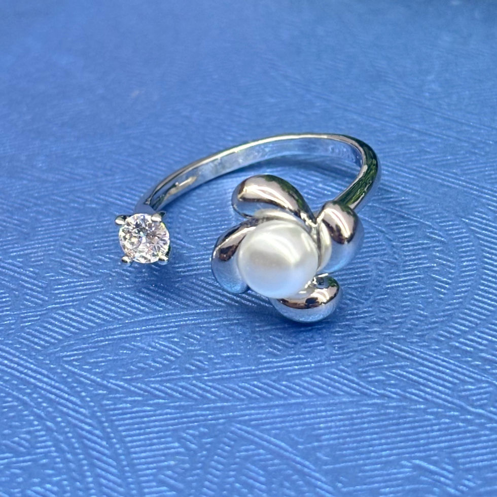 SILVER TULIP FLOWER AMERICAN DIAMOND RING